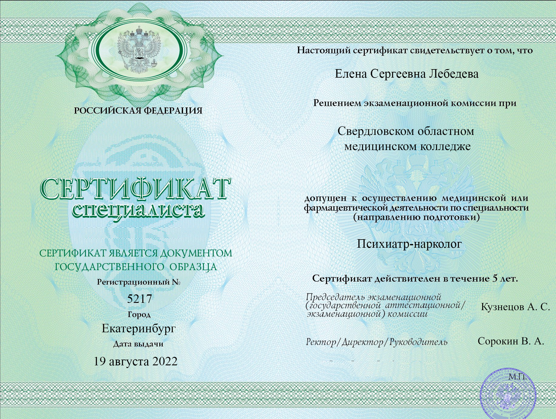 Елена Сергеевна Лебедева врач нарколог клиники доктора Стукаловой в Березниках
